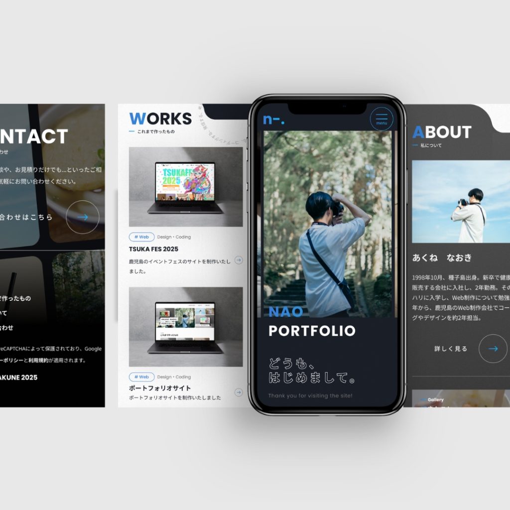 転職活動で、書類選考を通過するためにポートフォリオサイトを制作。自身のスキルセットや制作実績を選考における判断材料として活用してもらう。また、人物像に触れてもらうことで、共に働くイメージを持っていただく。